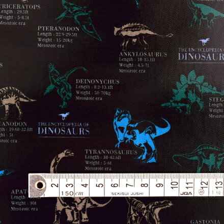 【綿生地 布地】入園、入学用品製作に恐竜(ディノサウルス)など怪獣柄 オックス生地 30cm以上10cm単位販売 3色 204N1