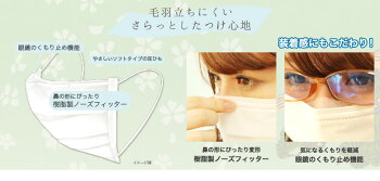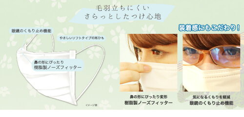 不織布の5層式フィルタの高いろ過率で空気中の微粒子を99%カット!(ネルソン研究所調べ) 眼鏡のくもり止め機能をもった立体プリーツ加工で鼻や口を圧迫しません。