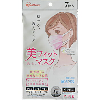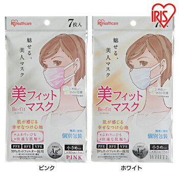 個包装 PM2.5 花粉 風邪 カゼ ウイルス ほこり プリーツ小顔美フィットマスク 小さめサイズ PK-FBF7SP・PK-FBF7SW ピンク・ホワイト アイリスオーヤママスク ウィルス 予防 花粉 使い捨て
