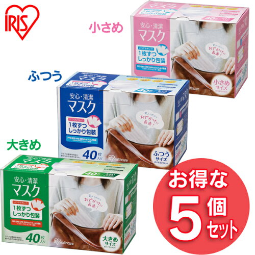個包装 PM2.5 花粉 風邪 カゼ ウイルス ほこり プリーツ 【5個セット】プリーツ型マスク 小さめ・ふつう・大きめ NRK-40PS・NRK-40PM・NRK-40PL アイリスオーヤママスク ウィルス 予防 花粉 使い捨て [cpir]