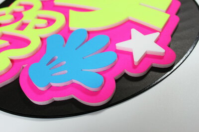 《立体メッセージ》 文字:手ふって フォント:愛 配色: 「背景」→蛍光ピンク 「文字」→蛍光イエロー 「ハンドマーク」→ミルクブルー(裏) 「星マーク」→ホワイト 《ジャンボうちわサイズ》 タテ:約285mm×ヨコ:約295mm 持ち手:約135mm ●注意● こちらの商品は配色、フォントの変更は致しておりません。